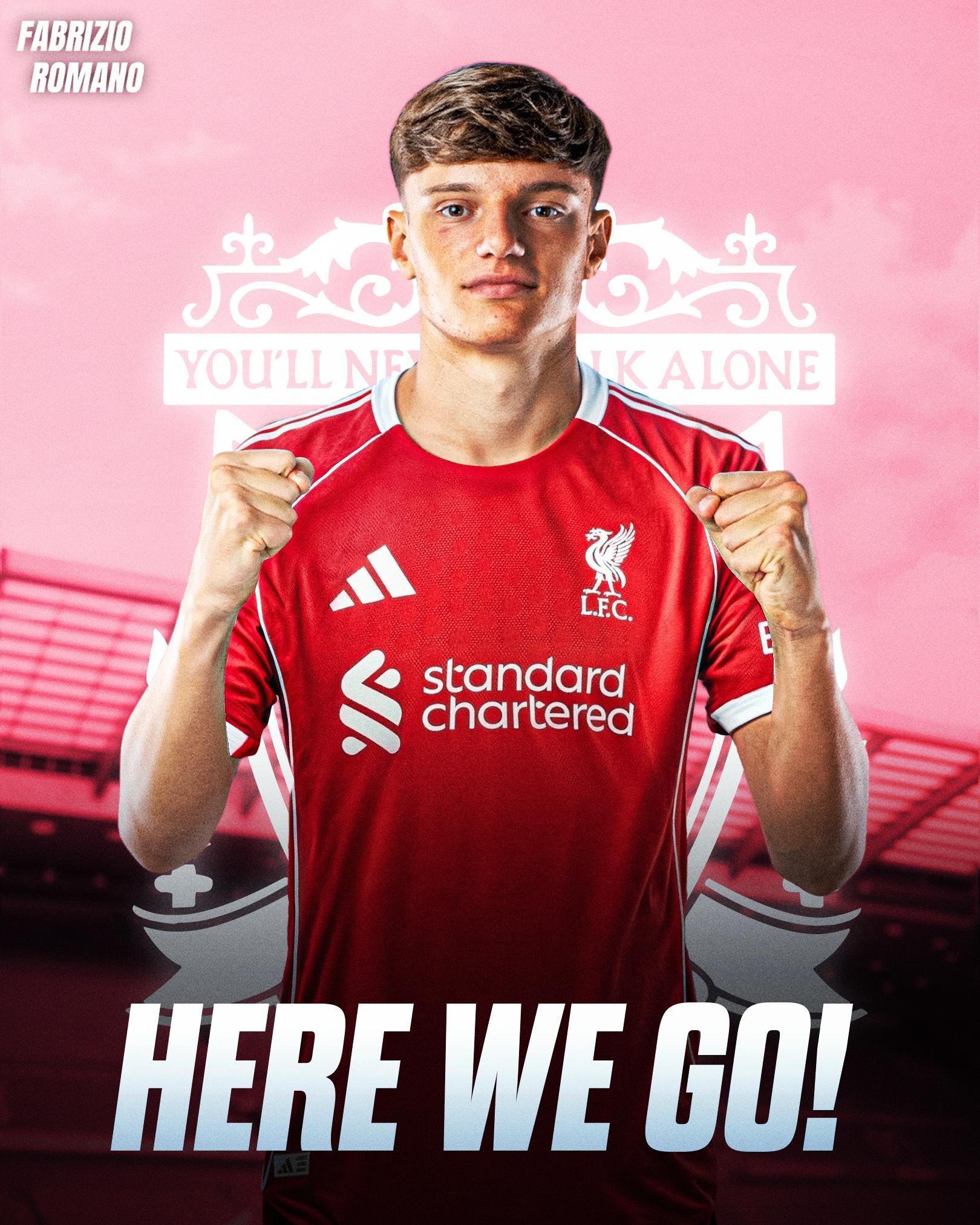 罗马诺确认利物浦以3500万欧元引进18岁新星莱昂尼