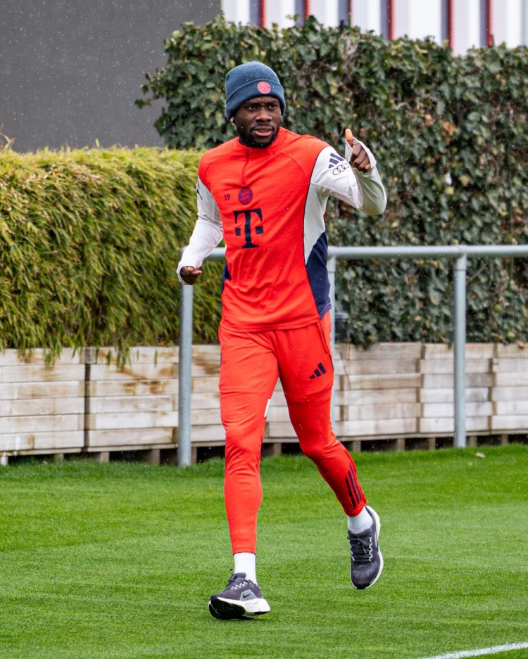 拜仁官方社媒晒出照片,确认戴维斯今天进行了跑步训练。